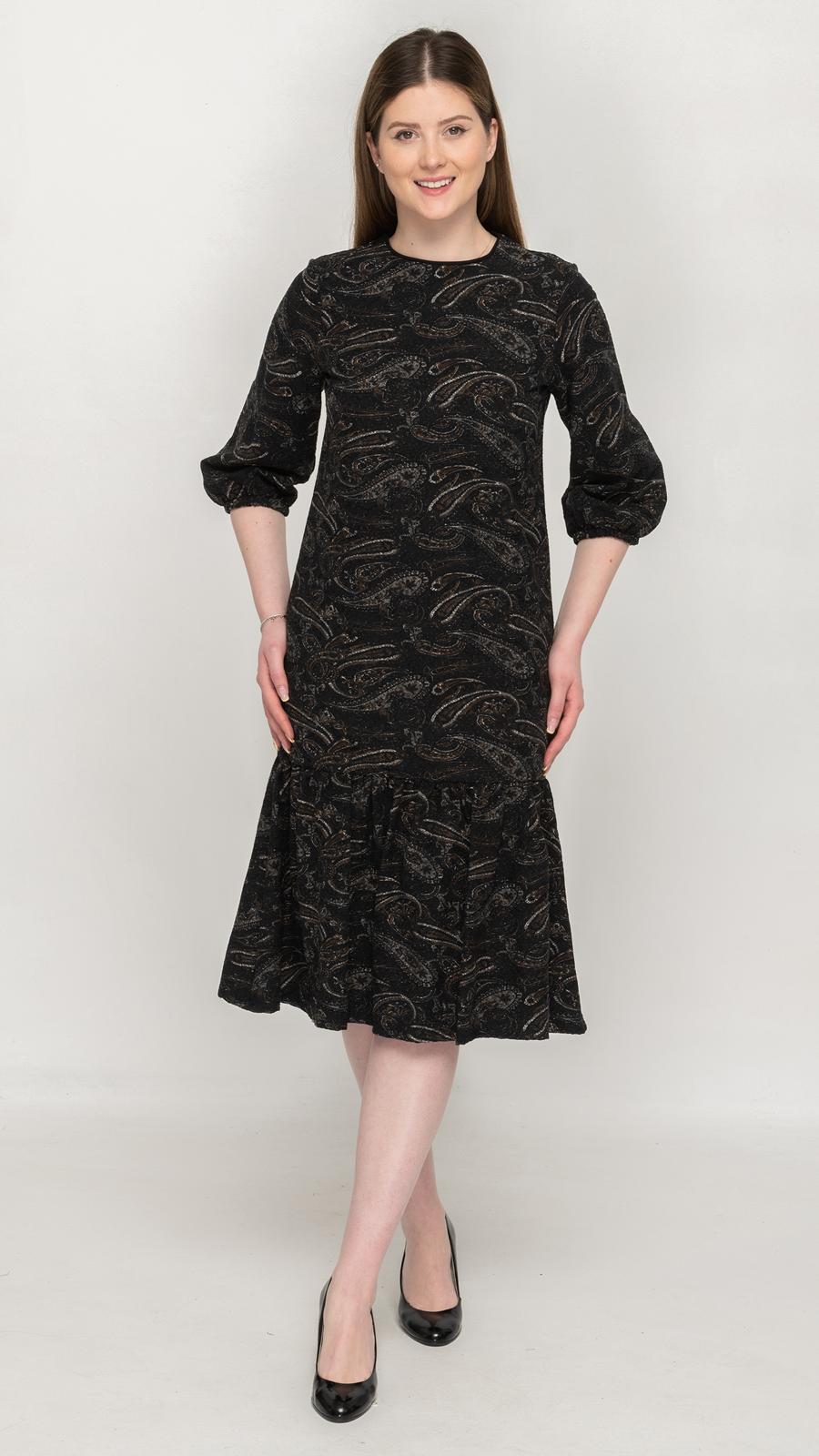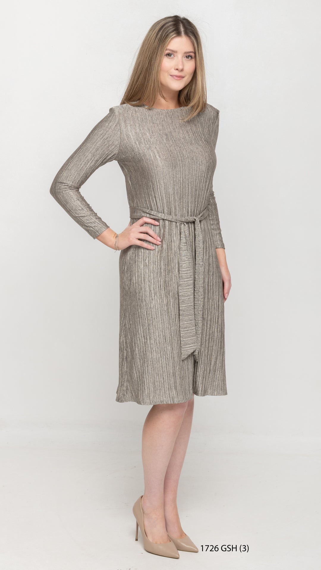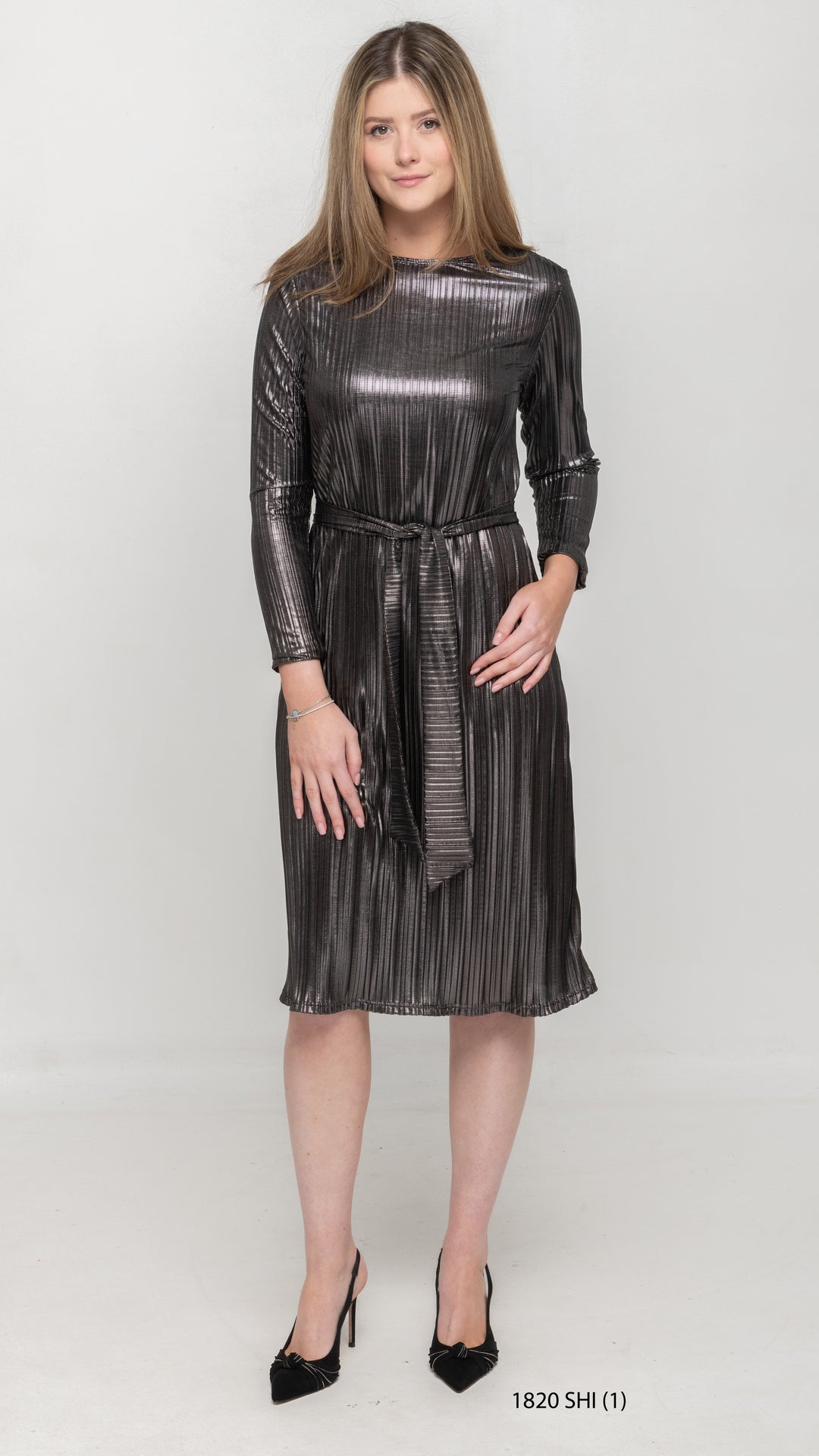 A-Line Long Sleeve Dress - Silver/Black Crinkle