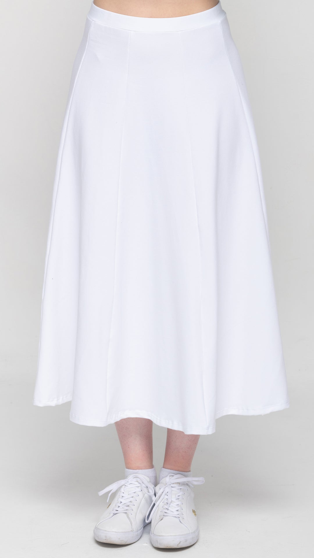 Stretch KnitDenim Panel Skirt - White Denim 33"