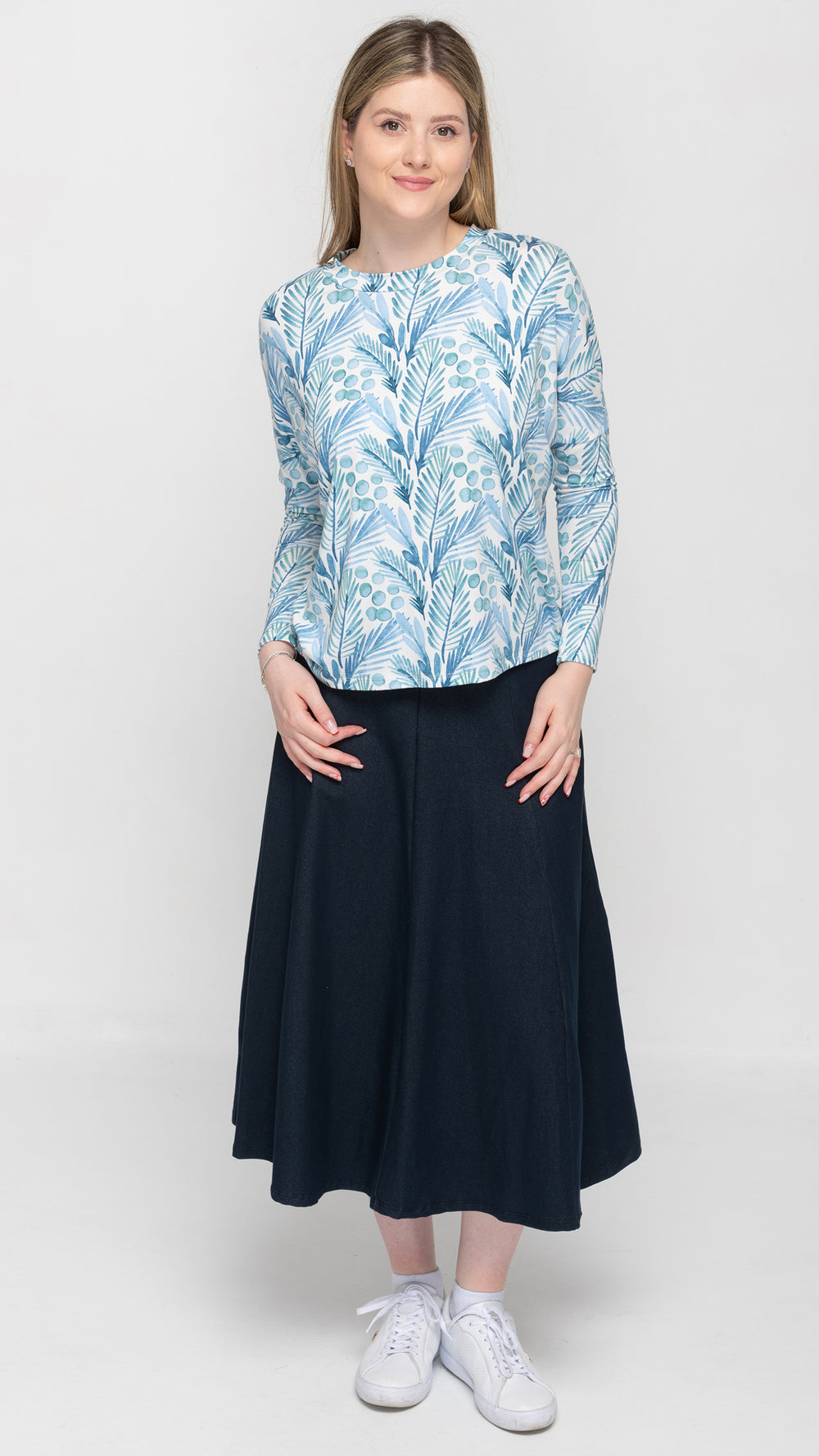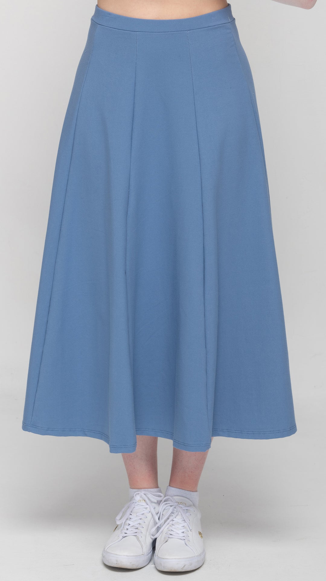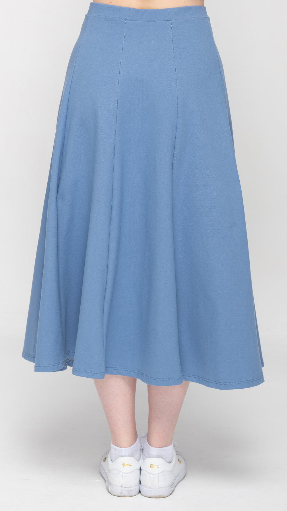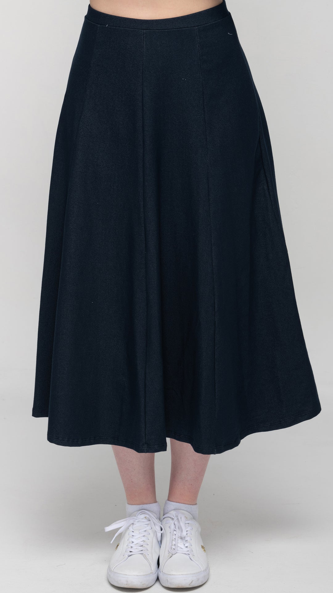 Stretch Knit Denim Panel Skirt - Mid Blue Denim 33"