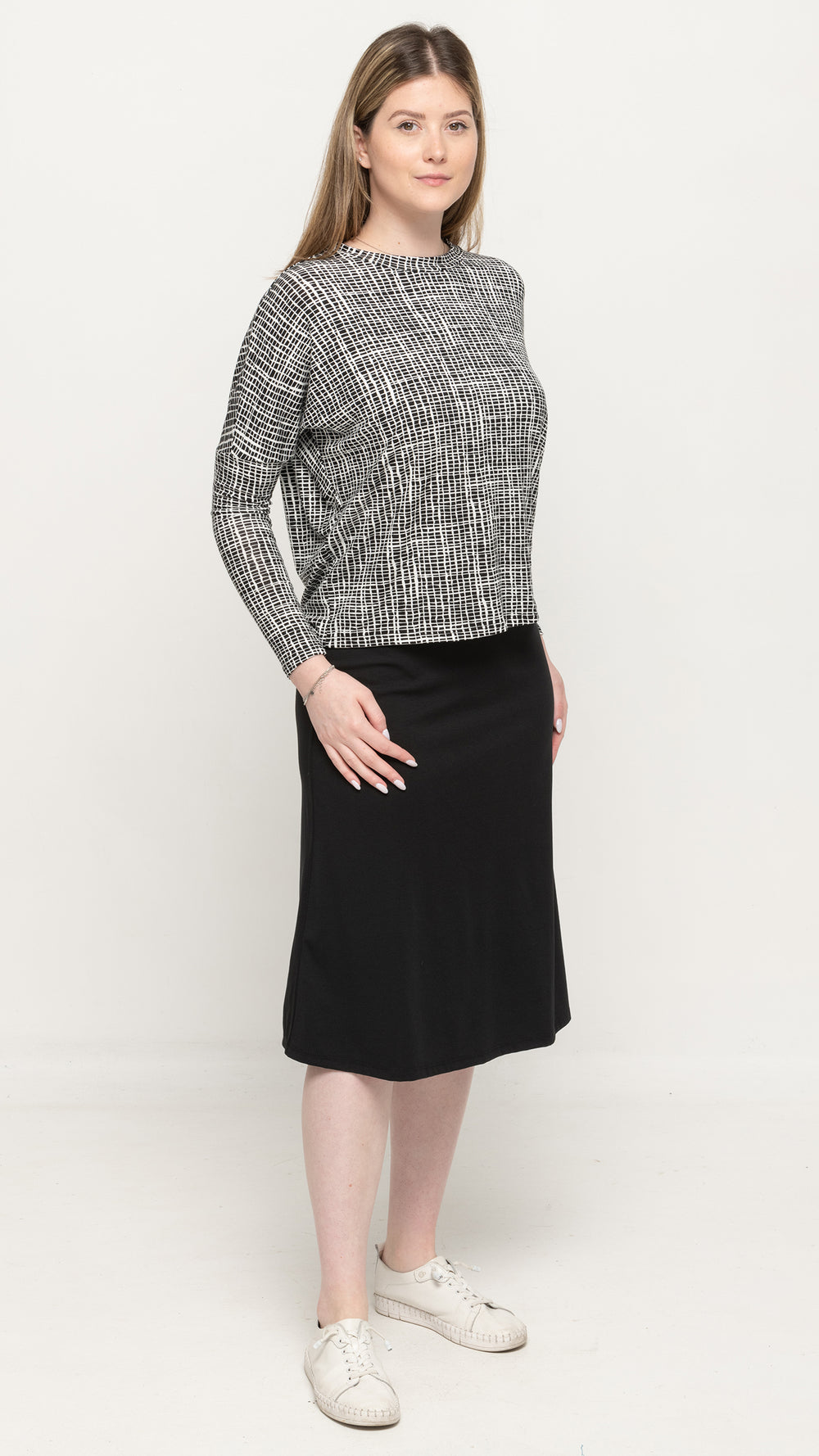 Dolman Jersey Monkey Top- Black/Squiggly Print